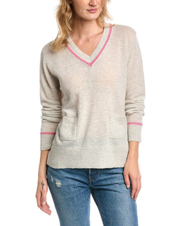 Birdseye Trim V-Neck Cashmere Sweater