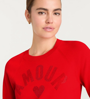 Discover understated luxury in this cozy pullover, complete with a glittering rhinestone "Amour" and heart motif that captures attention. The classic crewneck cut delivers effortless sophistication, while the shimmering detail injects personality and flair into your everyday rotation. Perfect for those moments when you want comfort without compromising on style.