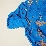 Fearlessly feminine in an electrifying shade of blue, this dress is cut from 100% cotton lace for its sculptural, three-dimensional feel. It has a timeless A-line silhouette, which starts with a rounded neckline, waist-cinching form and ends with a full, twirl-worthy skirt. Style it with stilettos for a summer wedding and check the Size Guide to find your perfect fit.