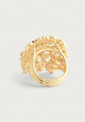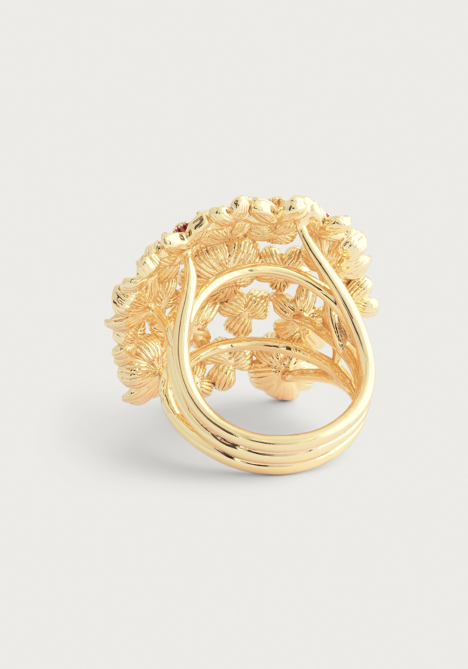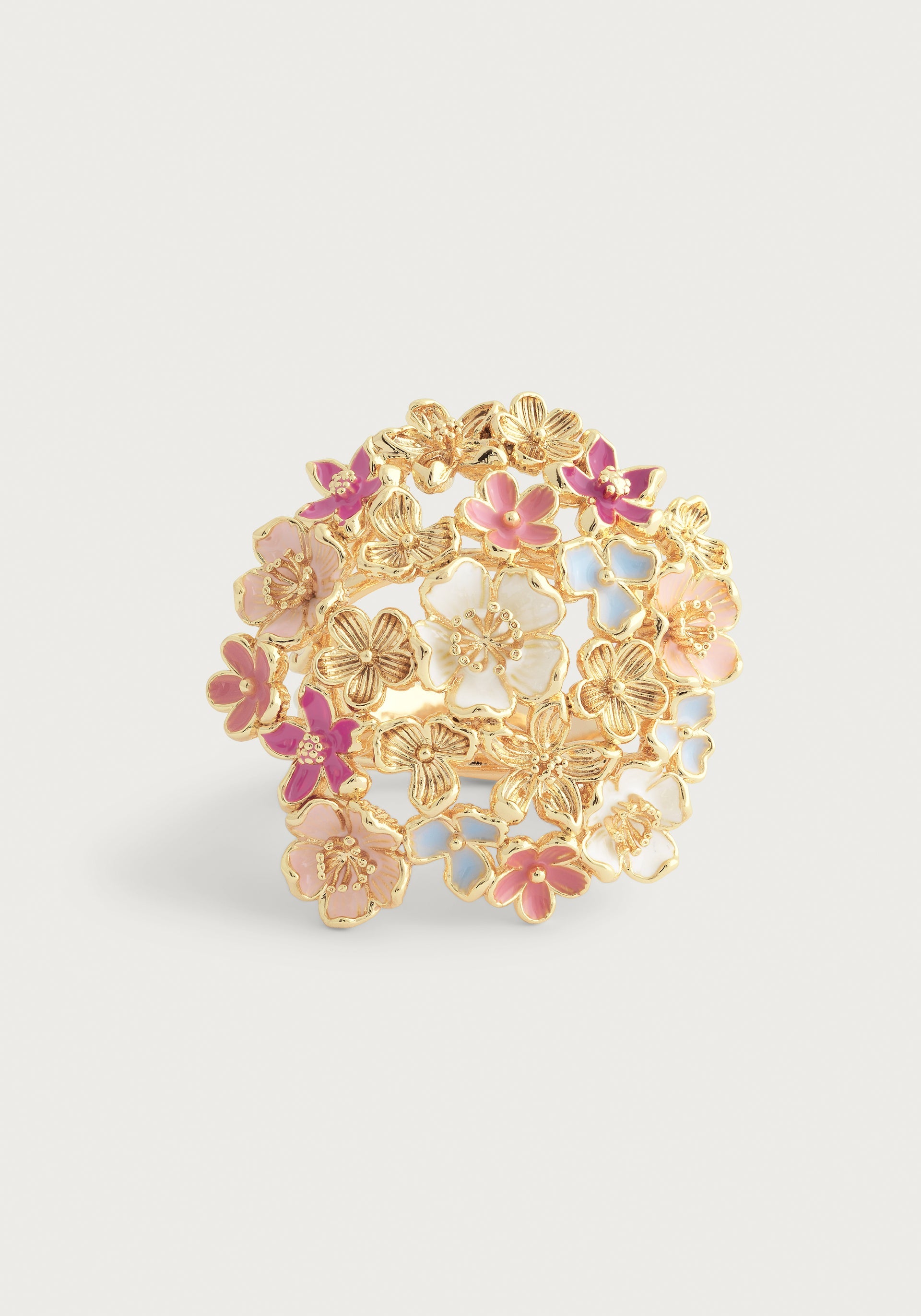 Epitomizing the beauty of a bouquet of flowers, the Wildflowers Gathered Ring is meticulously handcrafted from 18k gold-dipped brass, adorned with carefully selected colors of hand-painted enamel. A luxurious embodiment of sophistication, it effortlessly marries timeless elegance with a delightful sense of whimsy.