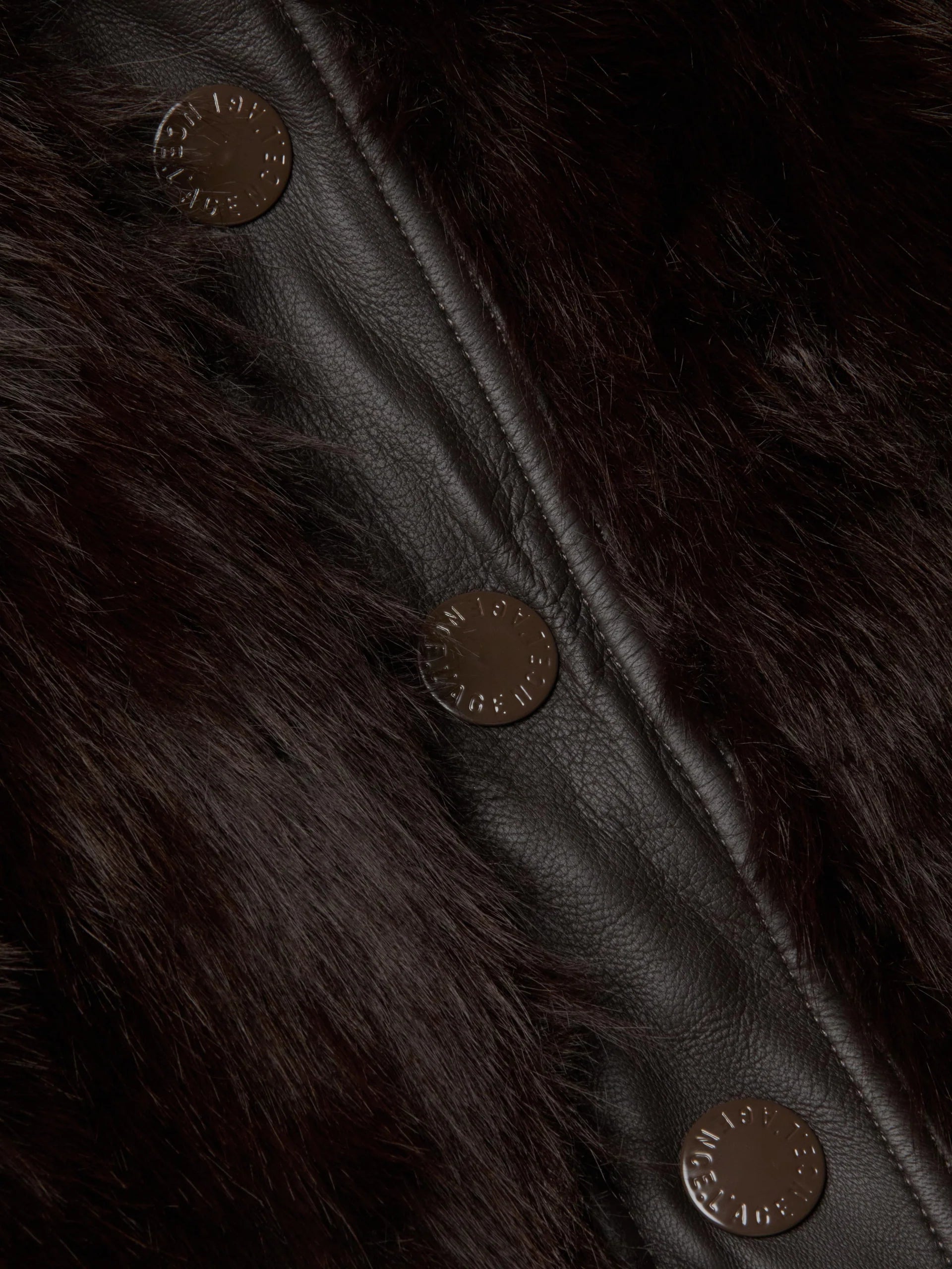 A cold weather essential, crafted from long hair faux fur and contrasting leather trim. The texture and volume of the Claira can transform any look from everyday to statement.