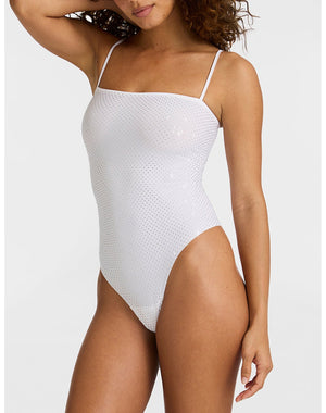 Shine on in The Party Starter Straight Cami Bodysuit, made from our luxe Italian microfiber and adorned with shimmering genuine glass crystals. It's machine washable, has an incredible four-way stretch and recovery, adjustable straps, and a snap gusset. And it's downright dazzling.