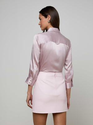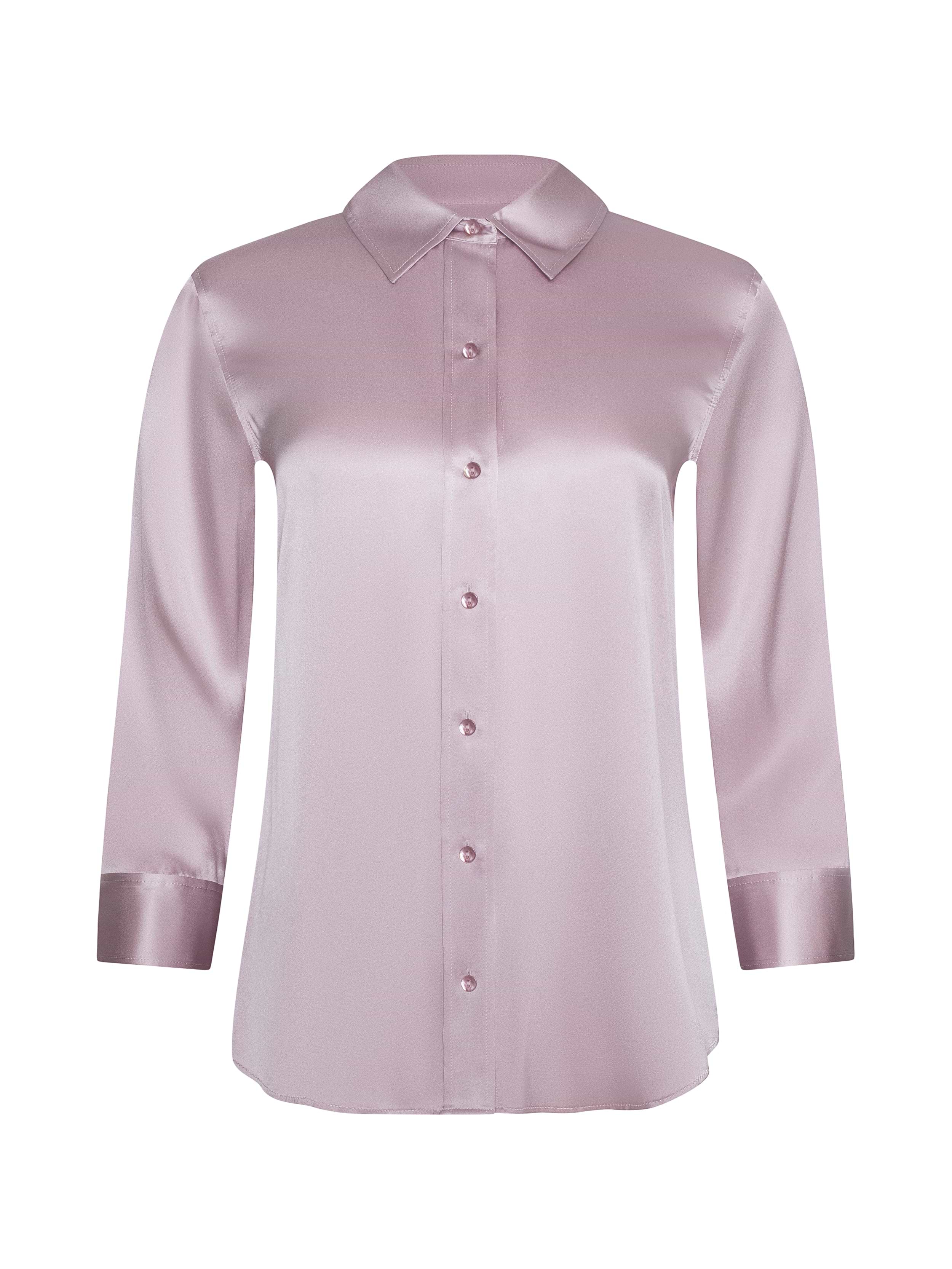 The iconic silk button-down that belongs in every wardrobe. This all-time bestseller is constructed with three-quarter length sleeves designed to perfectly showcase your jewelry—no sleeve rolling required. Our signature Dani blouse is back in a pastel lilac.