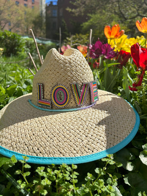 Introducing Jocelyn’s Ditch Plains Surfer LOVE Hat is perfect for the beach, days in the garden, or strolling around town. It’s a classic surfer hat with our signature LOVE patch giving it that extra Jocelyn touch. Pairs perfectly with our new summer resort wear! 100% paper straw hat Crystal and embroidered beaded love patch