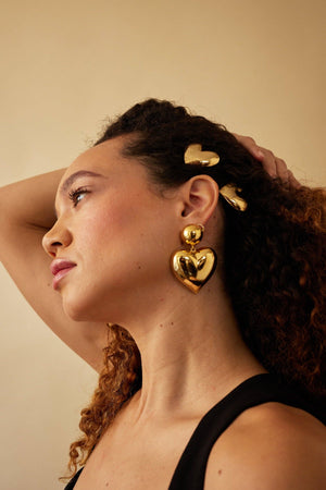 Elevate your look with our Gigi Heart Earrings. These exquisite puffy heart drop earrings are lightweight and hypoallergenic, making them perfect for everyday wear. Add a touch of luxury and sophistication to any outfit with these stunning earrings.