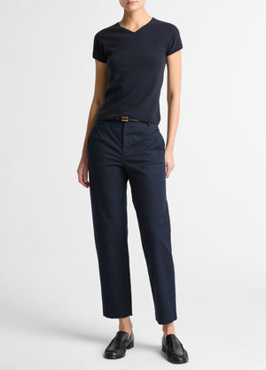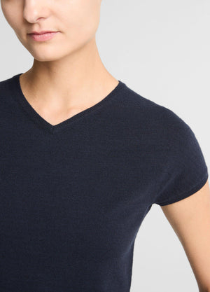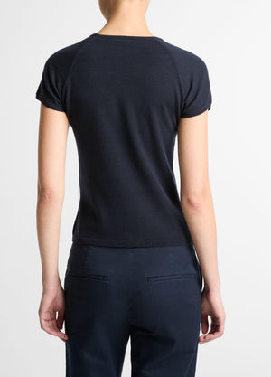 Crafted from a soft, lightweight blend featuring wool and cashmere, our short-sleeve sweater is defined by a modern high V-neck and raglan sleeves at the back.