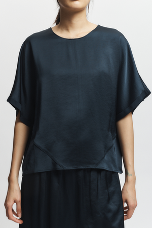 Introducing the Maeve Dolman Blouse in our bestselling navy color. This blouse features a classic dolman sleeve and is made from machine washable heavy charmeuse fabric. This effortless piece pairs well with our Paige pant for an easy to style look.