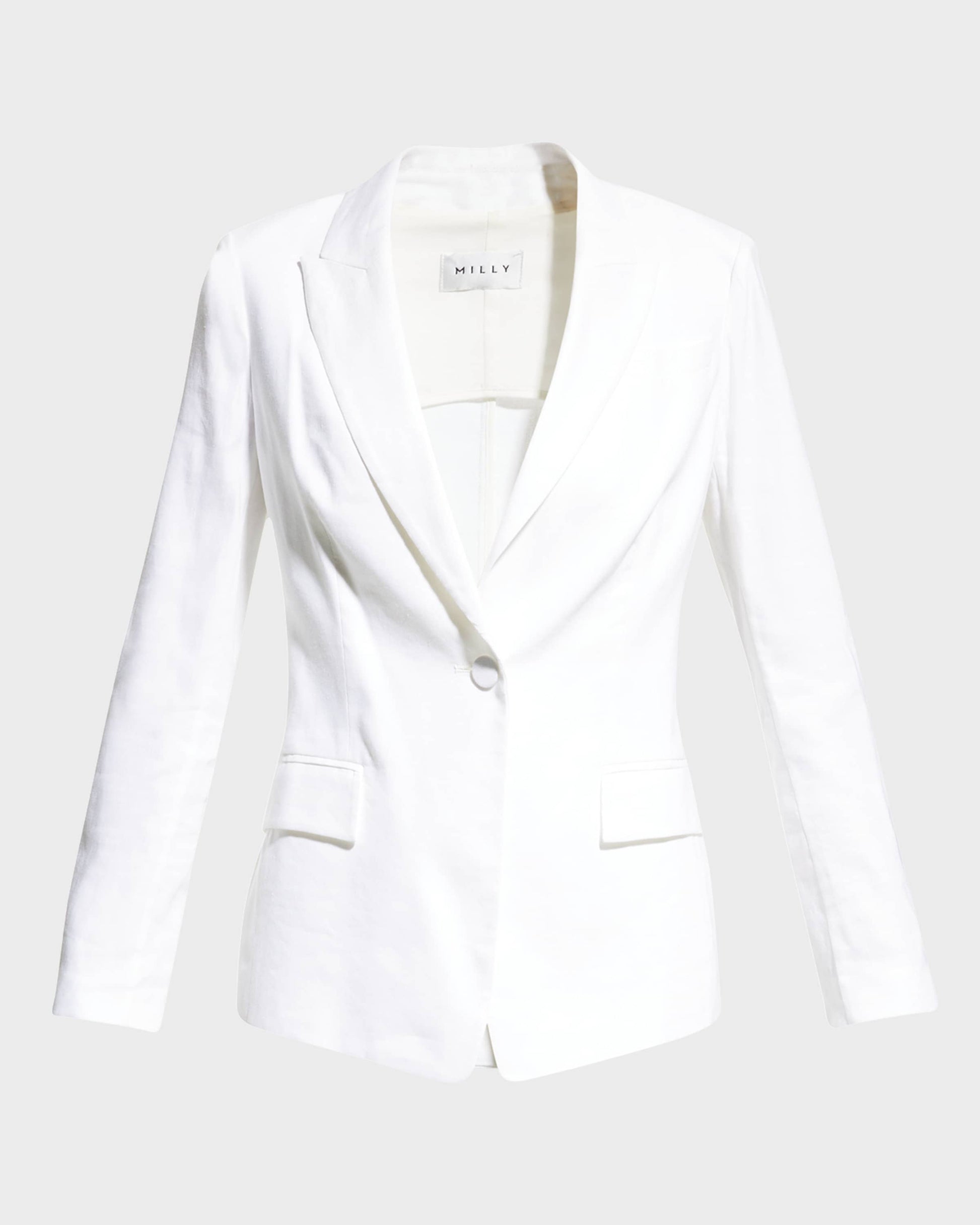 - Milly "Avery" blazer in a lightweight linen-blend fabrication