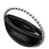 LOVEY Black Sequin Circle Bag with Metallic Beaded Handle