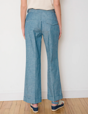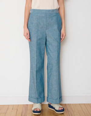 The Parker pant is the straight-leg icon of polished modernity. This 70s-inspired, high-waisted trouser is crafted in upcycled compact cotton with contrasting asymmetric back pockets and a turned cuff bottom hem.