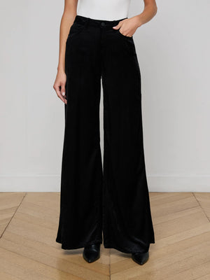 Meet the jean everyone can’t stop talking about. The Quincy is an easy, flattering wide leg that fits slimmer at the hips and wider at the hem. Now in black velvet corduroy.