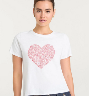 This shrunken tee combines playful style with everyday comfort. Featuring an intricate heart doodle embellished with delicate rhinestones, it pairs a classic crew neckline with soft cotton construction. A versatile piece that works beautifully layered or worn alone.