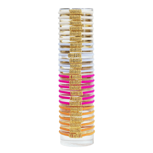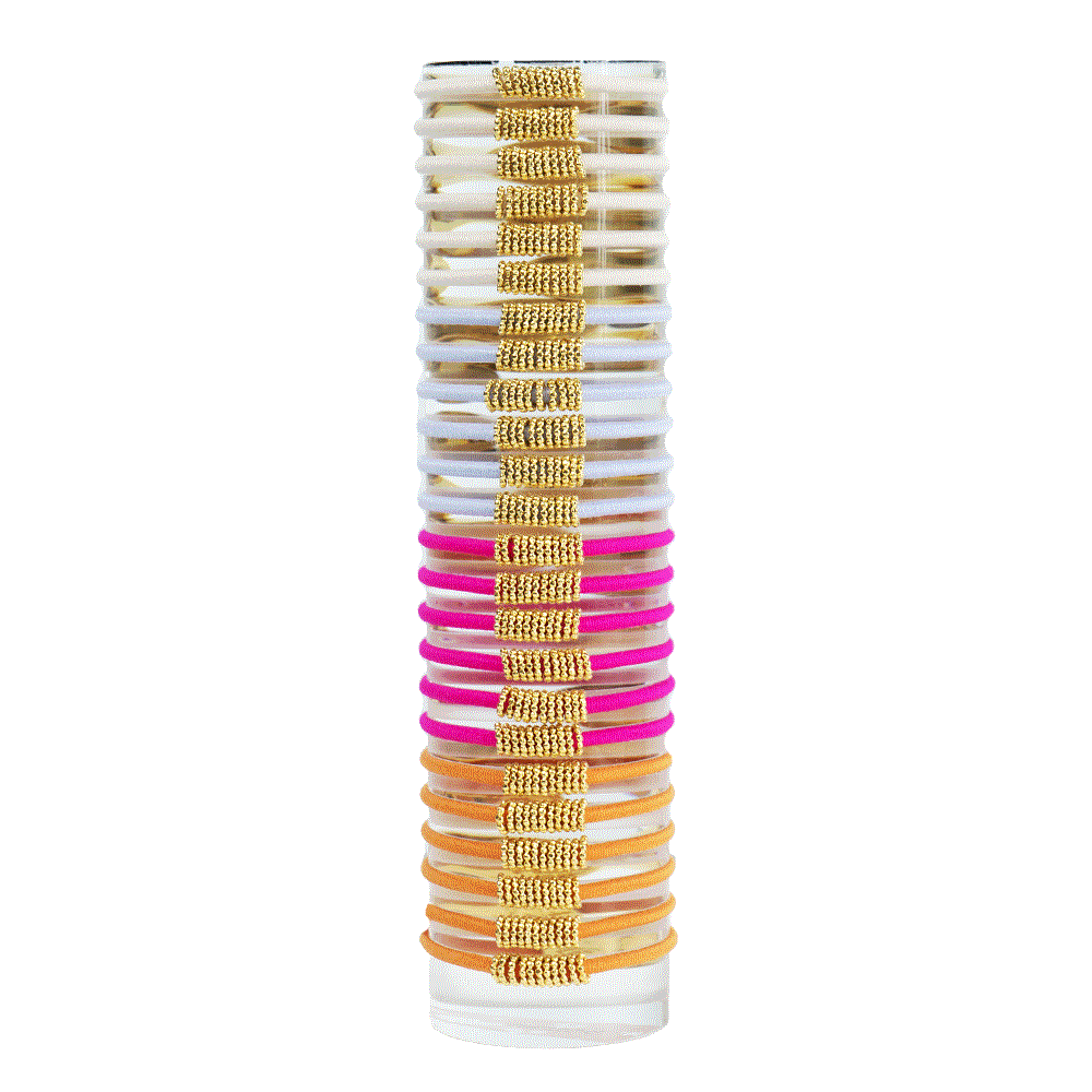 Our Shaker is is delicate, playful and beautiful. It comes pre-packed in a set of two elastics. MIX AND MATCH with any of your stacks, use them on their own or use them to build your own stack!