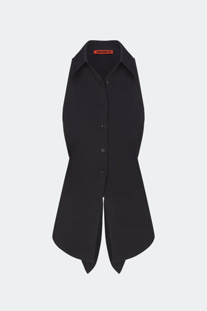 Loch now sleeveless. Stretch cotton poplin, with cut out back and adjustable tie for fit flexibility. The ultimate versatile piece,