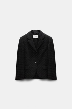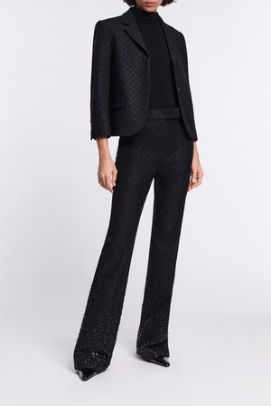 The mini-blazer is crafted in floral embroidered Punto Milano and has button closures. The form-fitting blazer can be worn as a set with one of our matching pant styles.