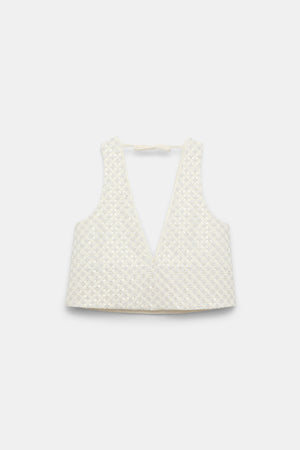 The crop top is crafted in Duchesse and is embellished with floral sequin patterning. The top has a deep V front and back, and can be worn as a set with a matching skirt.