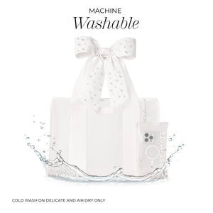 This special-edition release is all tied up with a statement bow that's as sweet as it is sophisticated. From girls’ weekends to beach vacations, the Bow Tote is the perfect bag. Fold it flat to pack as an extra tote, or use it as your beach carryall with plenty of room for towels, your cover-up, beach reads, and more. This waterproof tote keeps your essentials safe from coffee spills while traveling, or sand and saltwater when relaxing seaside. Organize your smaller belongings in the water-resistant touchscreen pouch and attach it to the key lanyard so they’re always within reach. Luxurious jacquard-woven straps keep things comfortable (no matter how much you pack) and are finished with a covered snap closure to fasten together. Fold it or fill it— this Beach Tote is ready for wherever your next trip takes you!