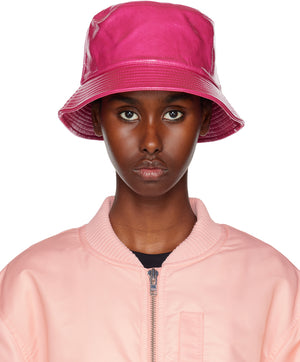 High-shine bucket hat from STAND STUDIO featuring pink, cotton, high-shine finish, flat peak and wide brim.