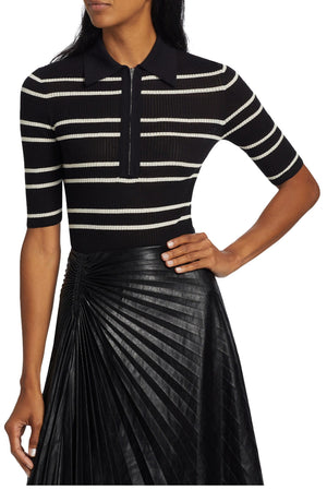 Created of a luxe cotton blend, the Cooper polo shirt is defined as a colorblock striped pattern, spread collar and shirt sleeves.