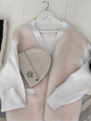 Obsessed with our new Moonlight Knit Hat. This is a super soft beanie featuring a crystal star. Wear this everywhere but especially skiing this season somewhere magical. Pairs so well with my new Ivory Boyfriend Cardigan