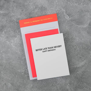 What do you get when you combine exceptionally thick paper, superb perforation and a wildly accurate and often hilarious phrase? Chez Gagné’s perfect notepads. Here to appease even the most OCD of us, our pristine perforated tear and heavy weight lined paper notepads are the ideal writing surface for manically jotting out your honey-do, shit-to-do, reminder or grocery list. Because we all know if it doesn’t get written down, it’s not getting done. We promise, you’ll f*cking love these.