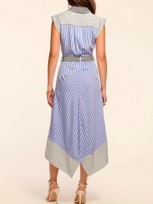 Nautical sophistication in Catalina stripes. The Vivienne features a classic collar, button-down front, and self-tie belt that adjusts to your perfect fit. Sleeveless and breezy, she's your new summer essential for seaside escapes, yacht clubs, and city strolls alike.